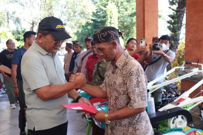Singaraja, Bupati Buleleng Nyoman Sutjidra serahkan 5 Traktor dan 1 Miliar Rehabilitasi Irigasi Tersier untuk tingkatkan kemandirian pangan di Gumi Den Bukit.